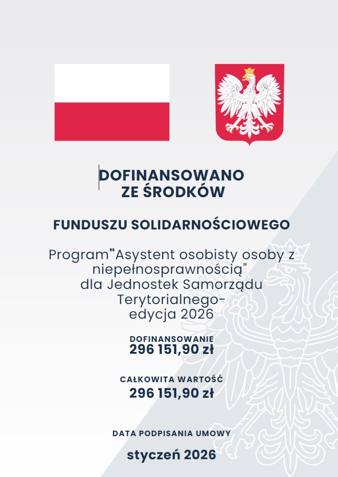 Gmina Rejowiec otrzymała dofinansowanie ze środków Funduszu Solidarnościowego na realizację Programu „Asystent osobisty osoby z niepełnosprawnością” dla Jednostek Samorządu Terytorialnego - edycja 2026.